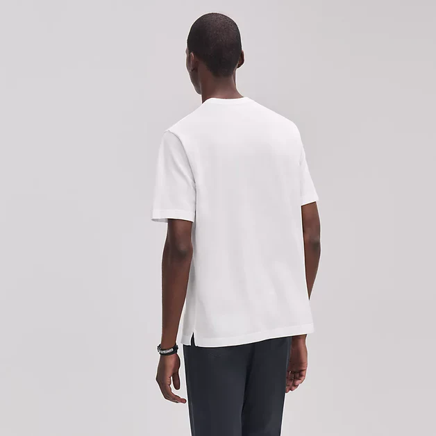 Discover the epitome of luxury with the Hermes Paris White T-Shirt. Crafted from the finest quality cotton, this T-shirt offers an unparalleled blend of comfort and sophistication. The pristine white color provides a timeless and versatile look, suitable for any high-end occasion. The highlight of this exquisite piece is the meticulously embroidered Hermes Paris logo on the pocket, a symbol of elegance and prestige. This T-shirt embodies the perfect balance of understated luxury and refined style, making it a must-have for the discerning wardrobe.