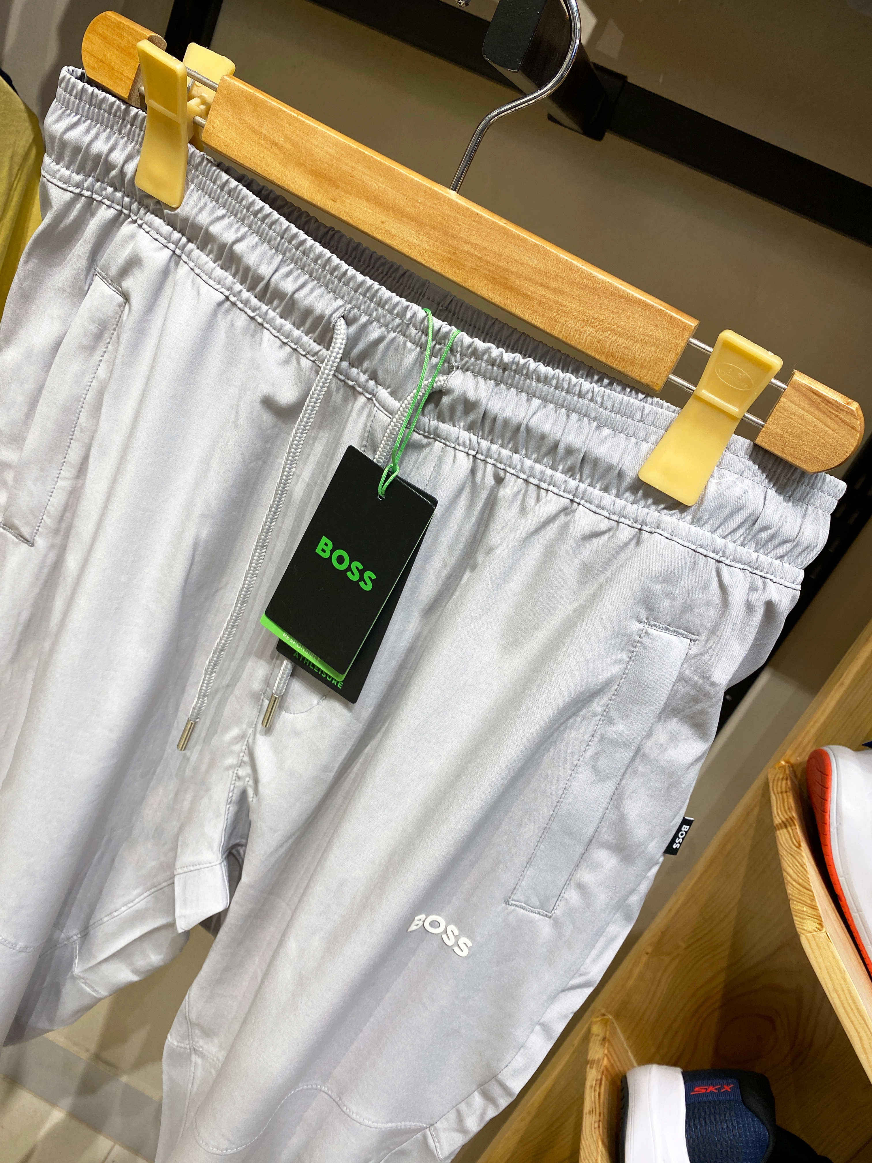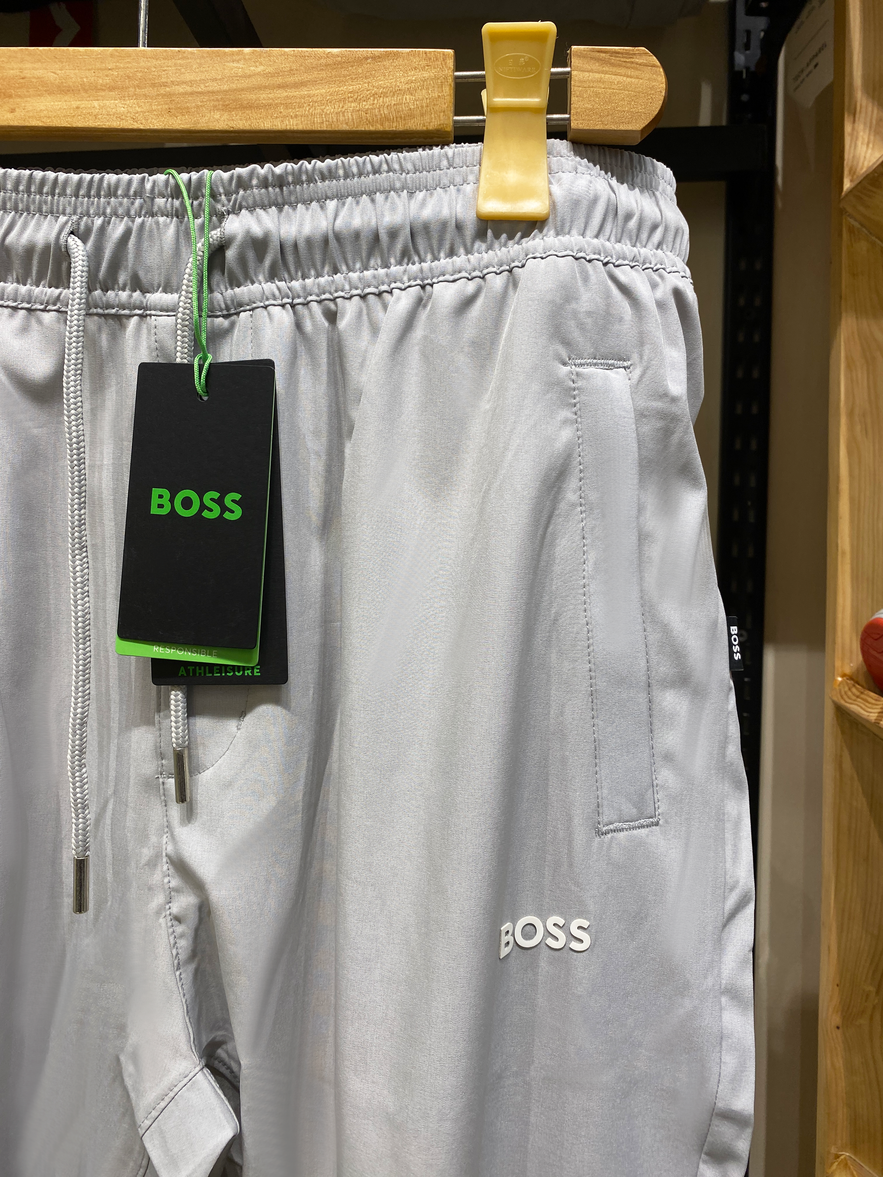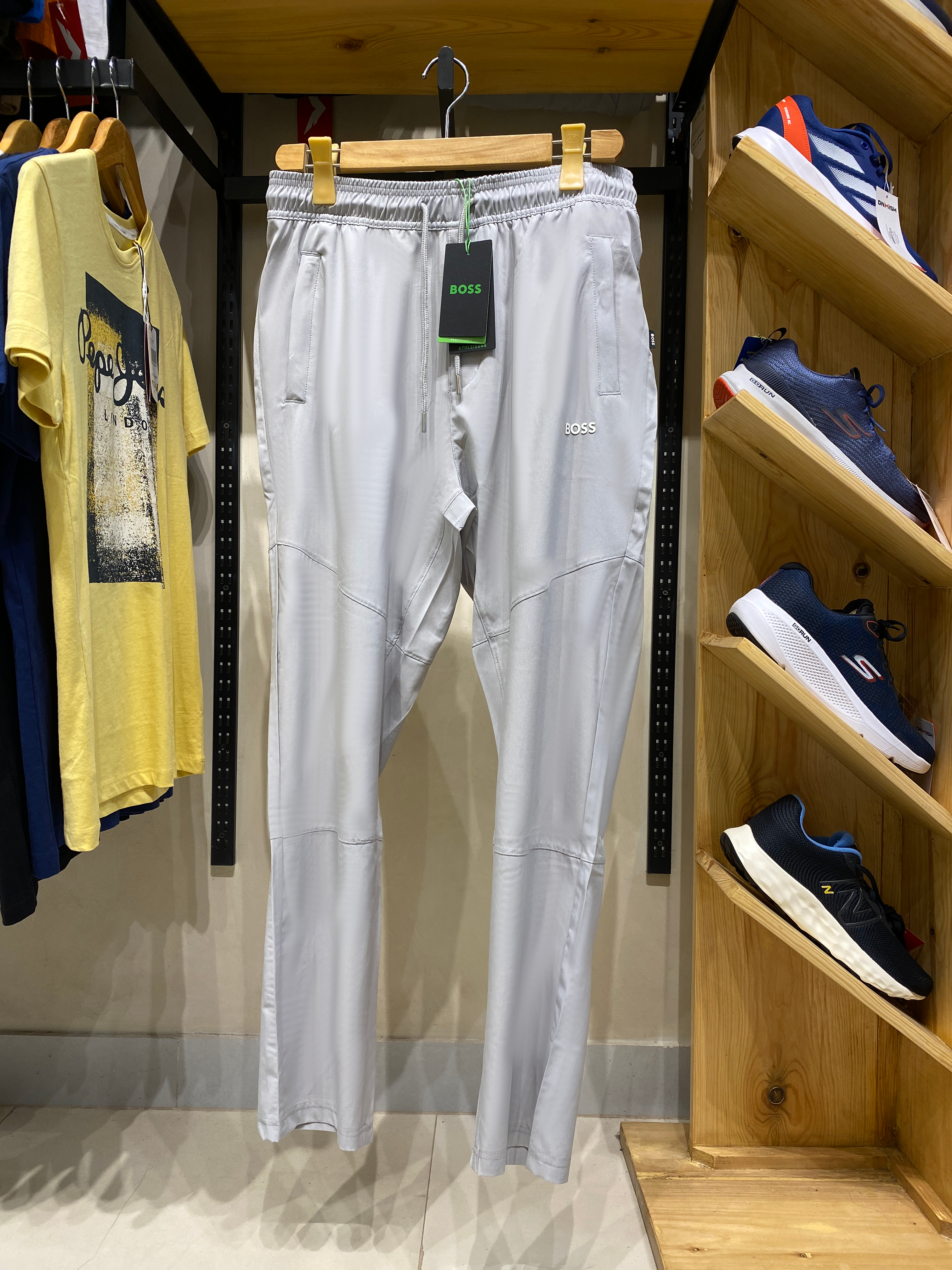 Introducing the Hugo Boss Light Grey Trousers, a perfect blend of sophistication and comfort. These premium trousers are crafted from high-quality fabric, ensuring durability and a luxurious feel. The light grey color adds a touch of elegance, making them suitable for both formal and casual occasions. The trousers feature a classic fit, providing a sleek silhouette that complements any body type. With meticulous attention to detail, these trousers come with original tags, guaranteeing authenticity. Elevate your wardrobe with these versatile and stylish Hugo Boss trousers, designed for the modern gentleman who values both fashion and functionality.