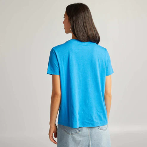 Expertly crafted with 100% organic cotton, this blue JHK plain women's t-shirt is both sustainable and stylish. Made in Bangladesh, it offers a comfortable fit and gentle feel, making it a versatile addition to any wardrobe. Elevate your fashion game while supporting ethical and eco-friendly practices.