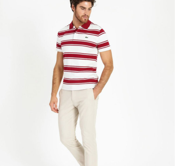 Embark on a journey of elegance with Lacoste's classic fit white striped polo shirt. This piece is a testament to the brand's legacy of crafting premium garments. Made from superior quality fabric, it promises comfort without compromising on style. The subtle stripes add a touch of sophistication, making it a versatile addition to your fashion-forward wardrobe. Whether it's for a leisurely day out or a smart-casual event, this polo shirt is sure to make a statement of refined taste. 👕✨