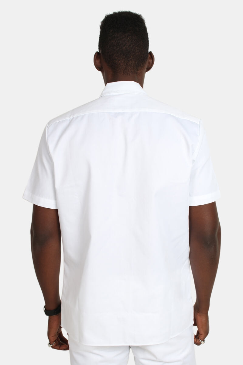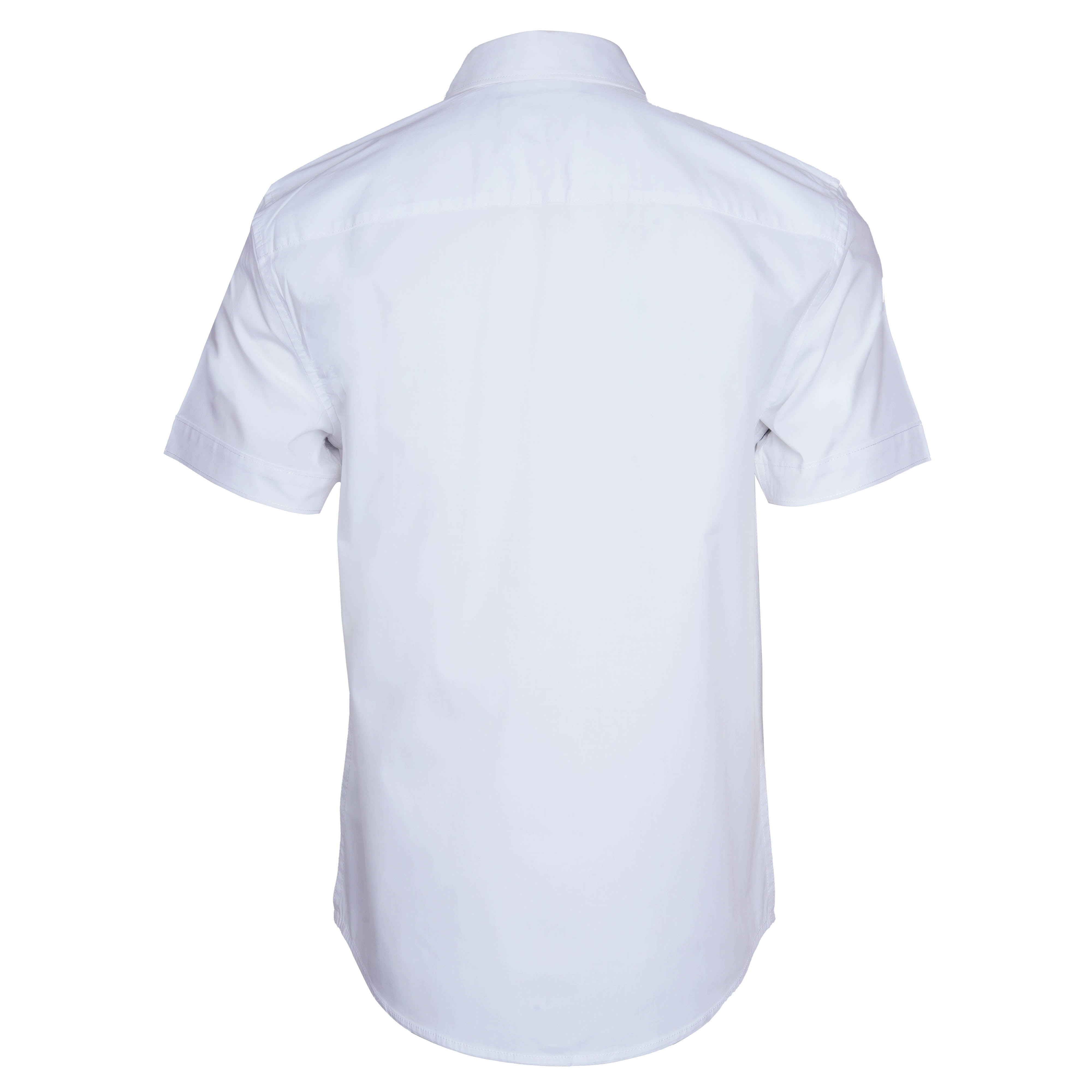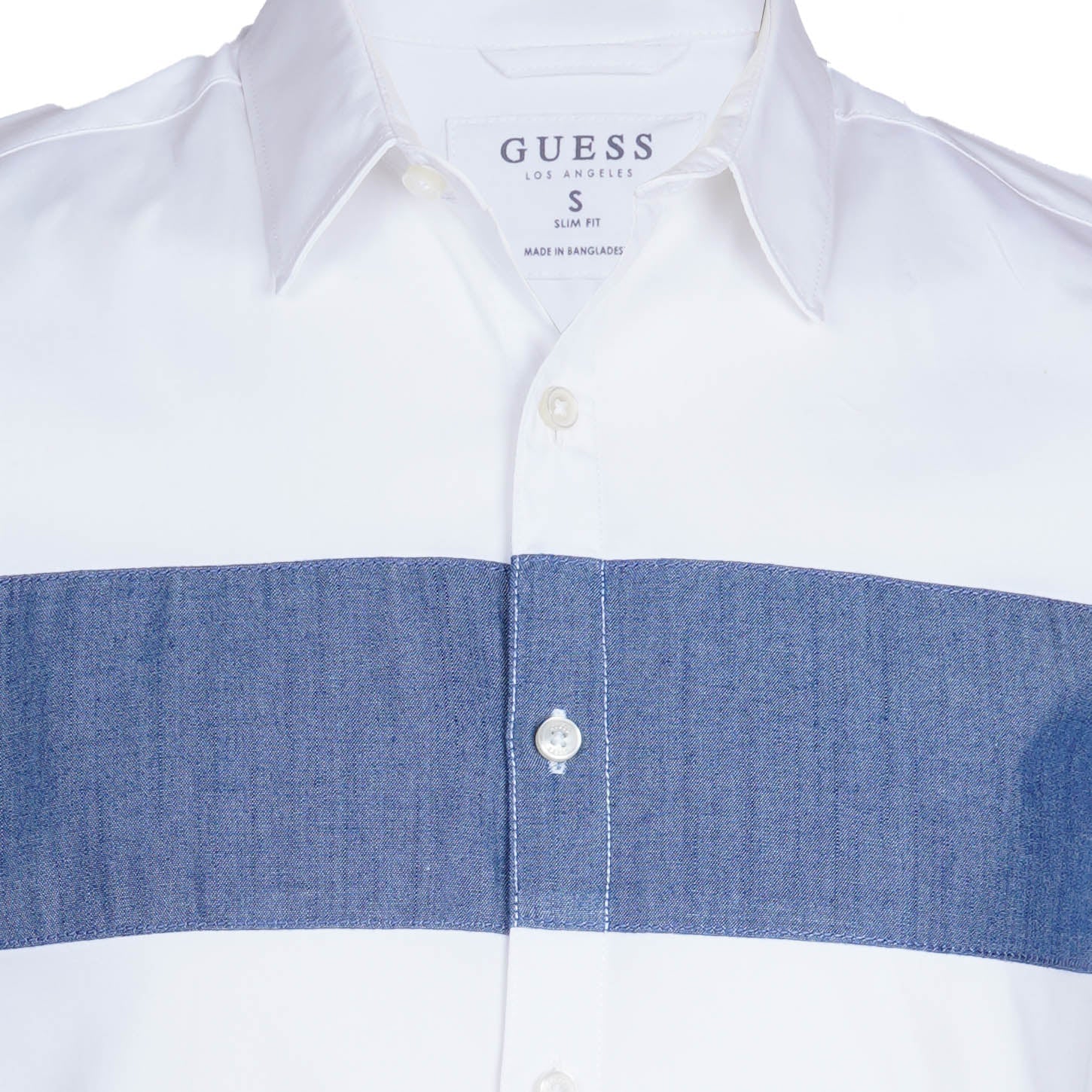 This is a stylish half-sleeve shirt from Guess. Crafted in Bangladesh, it's made from breathable cotton with a touch of denim. The white color adds a crisp, clean look. It's designed for a slim fit, offering a flattering silhouette. The shirt is adorned with a small, embroidered Guess logo, adding a touch of charm and showcasing the brand's identity. Overall, it's a lovely piece that combines comfort and style.