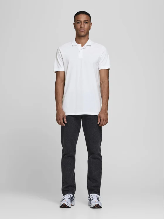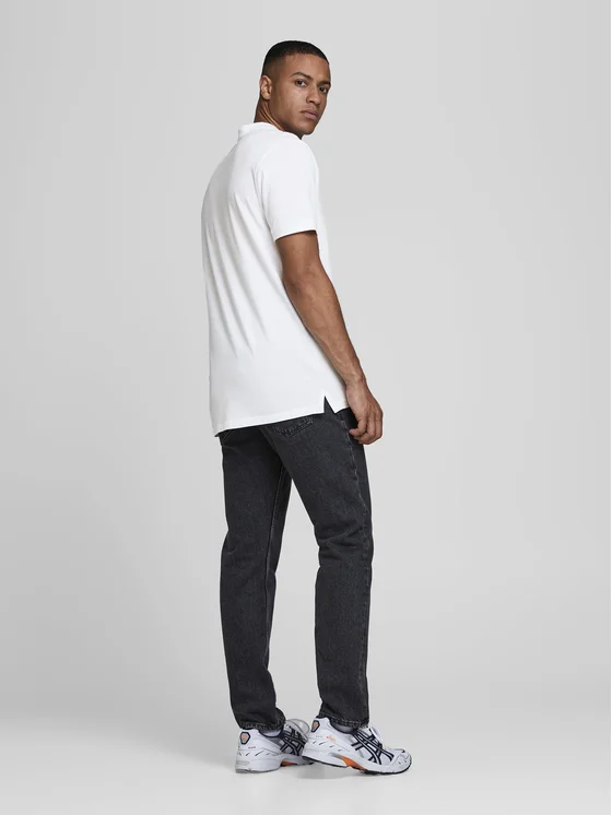 Elevate your casual wear with this pristine white polo shirt from Jack & Jones. The shirt features a subtly embroidered logo, adding a touch of class to the simple yet elegant design. Crafted from a soft fabric, it promises both comfort and durability. The sleek silhouette and the versatile white hue make it a perfect match for any outfit. Whether you're heading out for a casual lunch or a relaxed evening, this polo shirt will keep you looking effortlessly stylish.