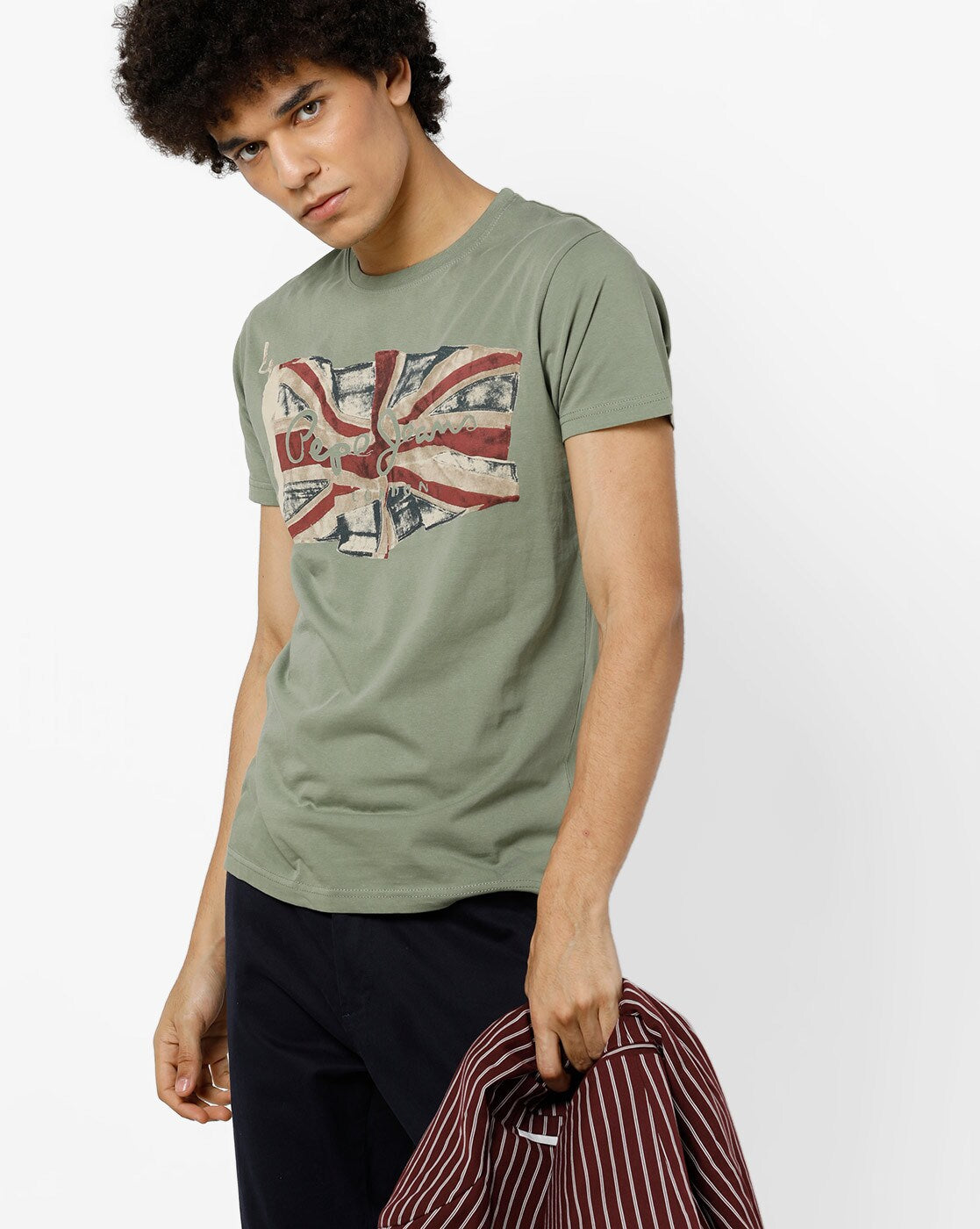 Single jersey short sleeve t-shirt with huge pepe jeans logo with London flag underneath.