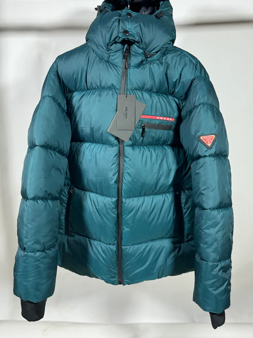 Whether you're navigating the bustling city streets or enjoying a weekend getaway, this Prada puffer jacket ensures you stay warm and stylish. Its premium materials and thoughtful design make it a timeless addition to any wardrobe, perfect for those who appreciate the finer things in life. Elevate your winter wardrobe with this exceptional piece from Prada, where fashion meets functionality in the most elegant way.