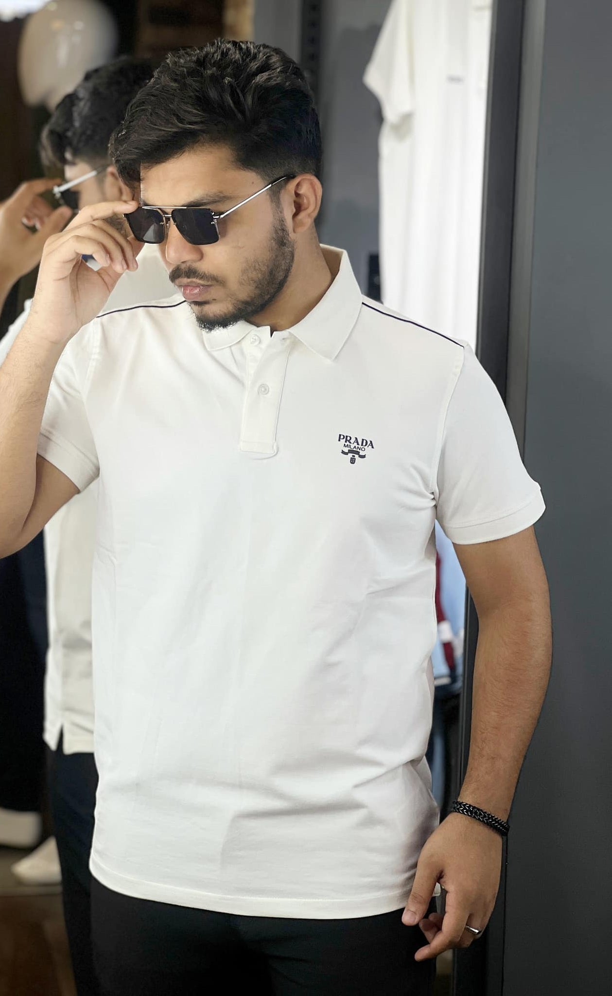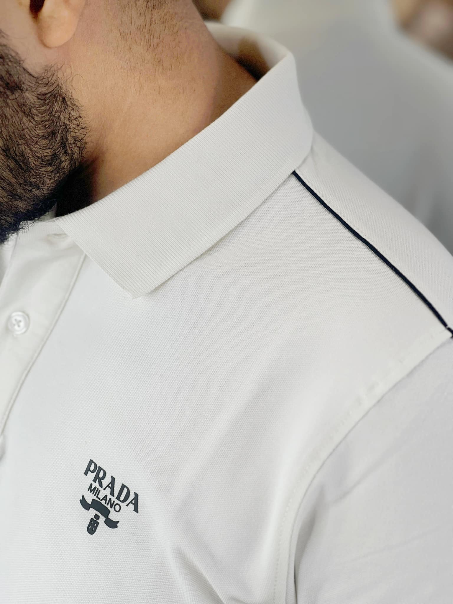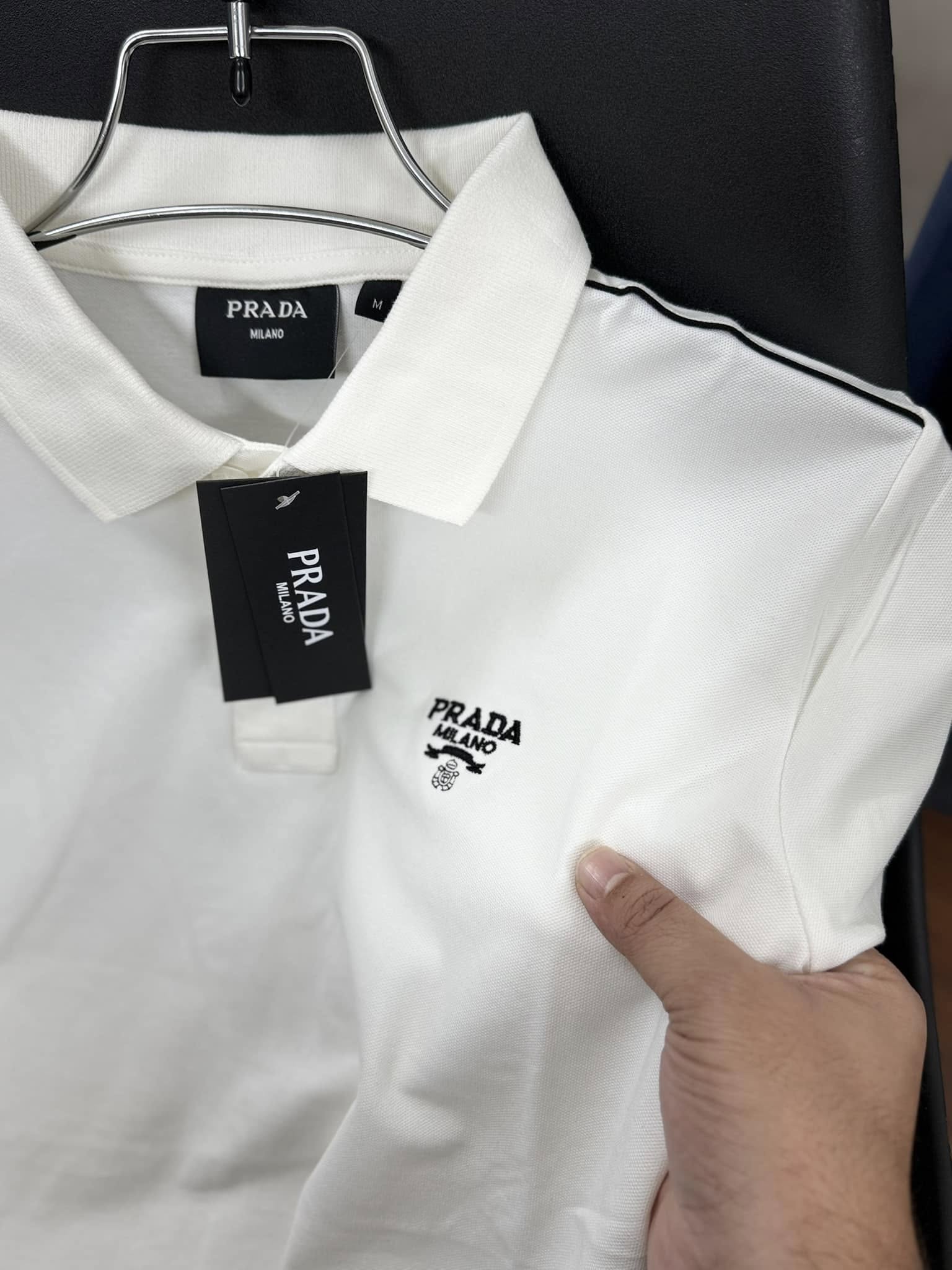 This polo shirt is crafted from the finest Italian cotton, offering unparalleled comfort and a luxurious feel. Its classic design features a subtle Prada logo embroidered on the chest, adding a touch of sophistication. The pique fabric is breathable and moisture-wicking, making it perfect for both casual and formal occasions.