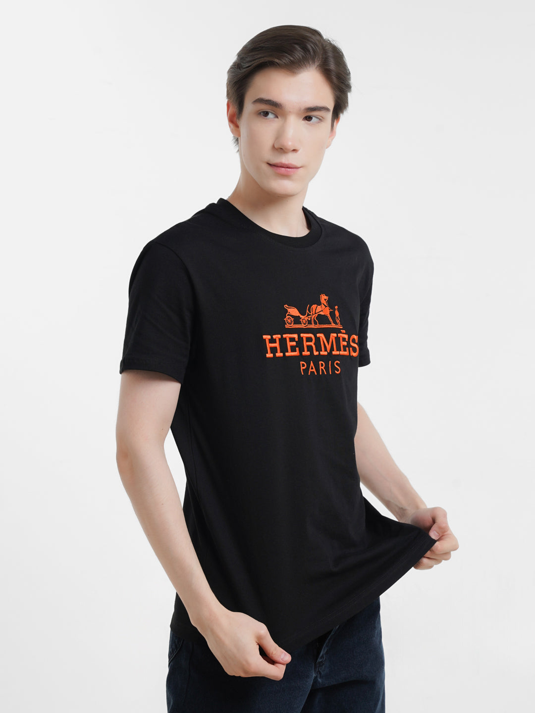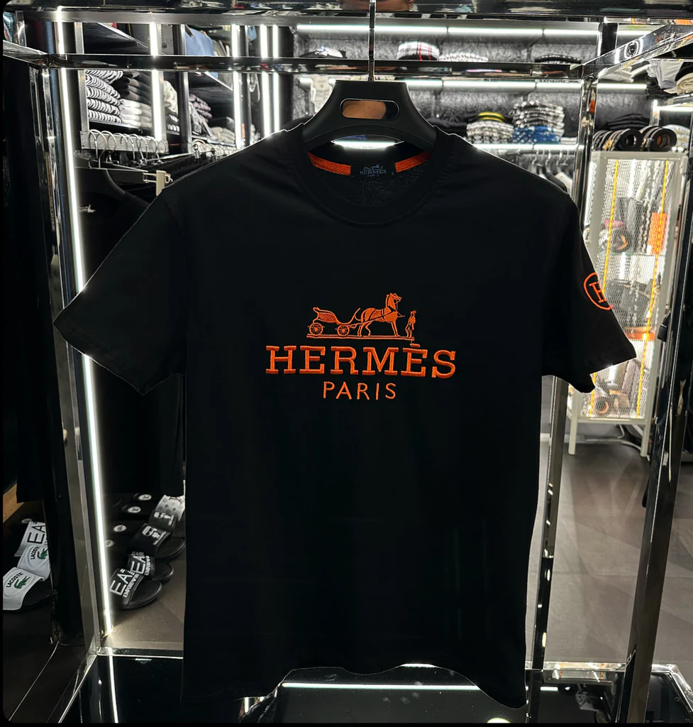 Experience luxury and sophistication with the Hermes Paris Black T-Shirt. Crafted from the finest premium fabric, this t-shirt offers unparalleled comfort and style. The highlight of this exquisite piece is the vibrant multicolored embroidery of the iconic Hermes Paris logo, featuring a striking orange color that adds a touch of elegance and exclusivity. Perfect for any occasion, this t-shirt is a must-have for those who appreciate high-quality fashion and timeless design. Elevate your wardrobe with this stunning Hermes Paris creation.