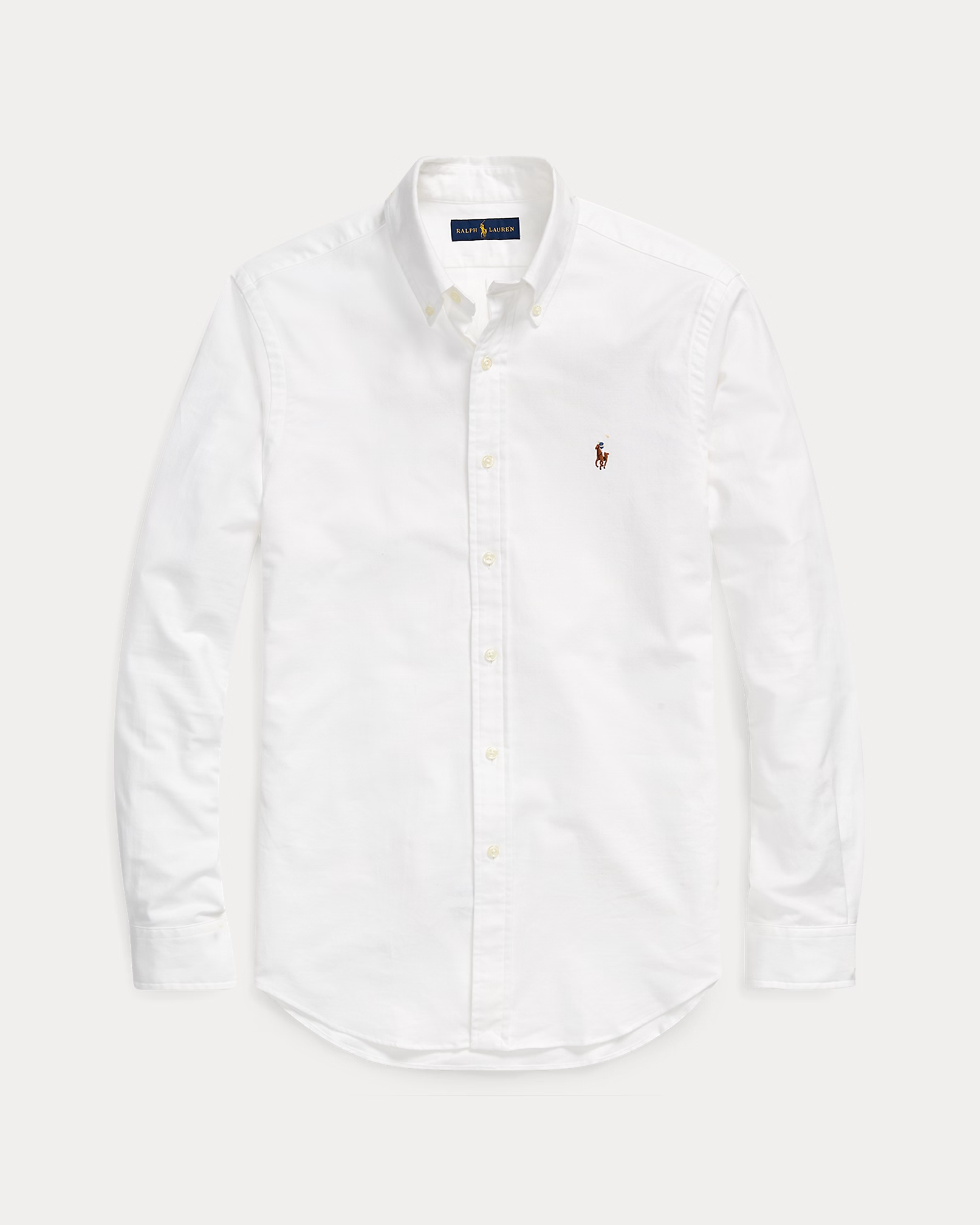 Introducing the exquisite Ralph Lauren Oxford Shirt, crafted from premium White Oxford fabric. This slim-fit shirt features the iconic Ralph Lauren logo, adding a touch of sophistication. The shirt is elegantly finished with white buttons, offering a perfect blend of classic style and modern elegance. Ideal for any occasion, this shirt embodies timeless luxury and impeccable craftsmanship.
