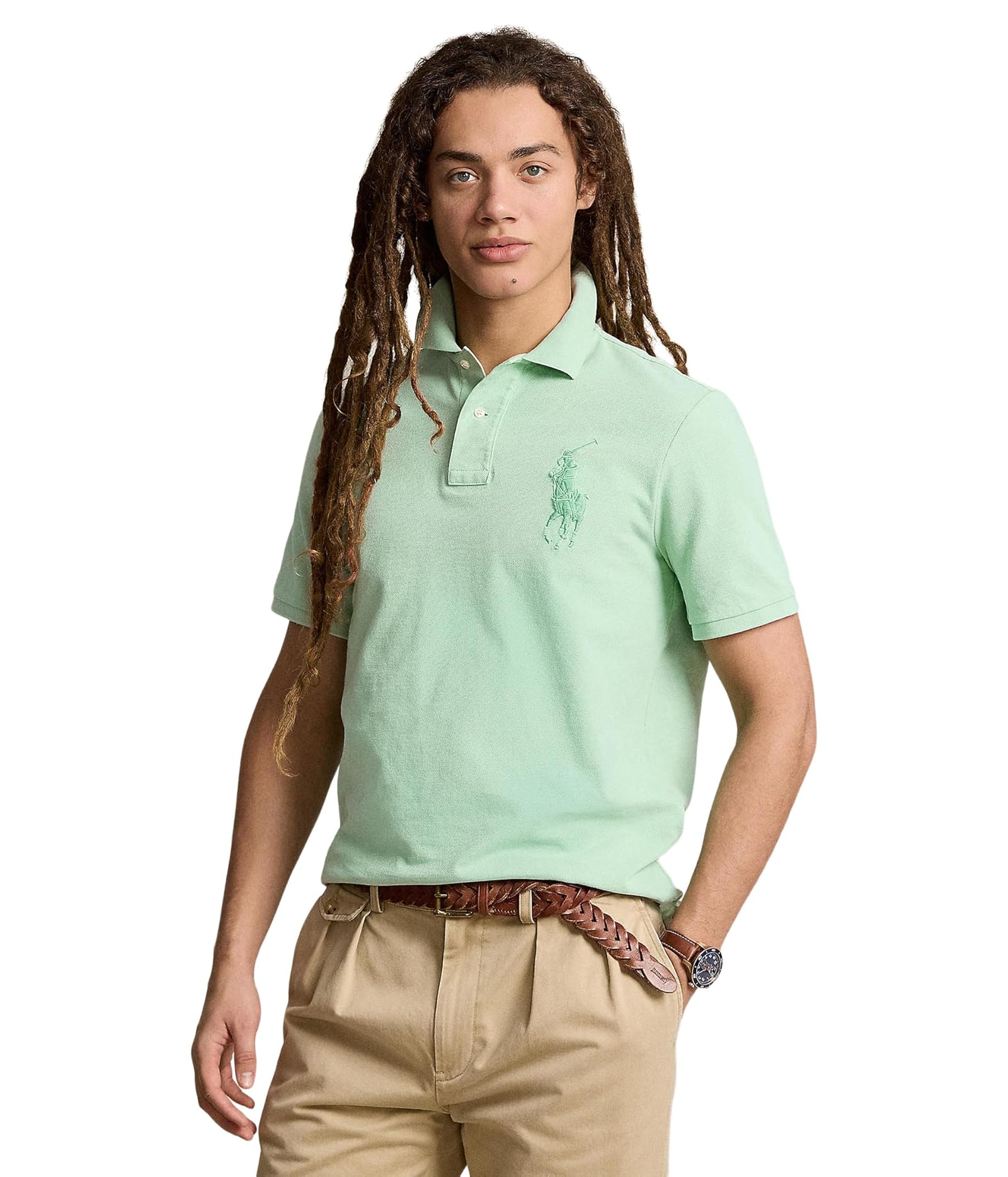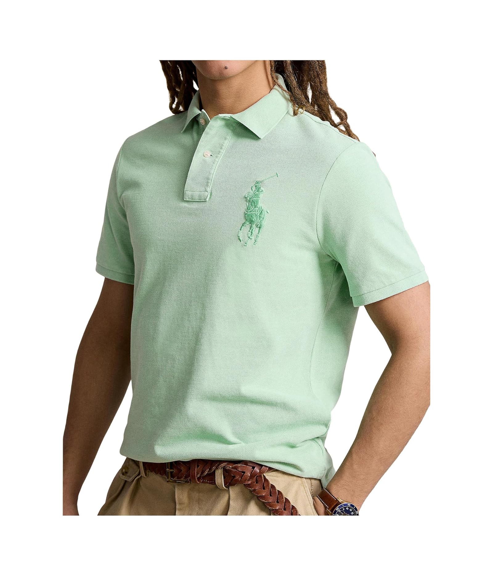 An American style standard since 1972, the Polo shirt has been imitated but never matched. Over the decades, Ralph Lauren has reimagined his signature style in a wide array of colors and fits, yet all retain the quality and attention to detail of the iconic original. This version is made with our highly breathable cotton mesh and accented with a tonal version of our signature embroidered Big Pony.