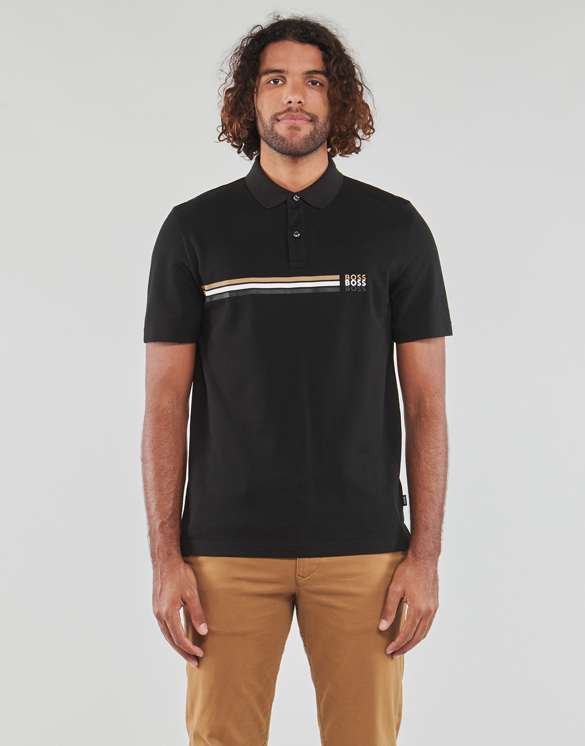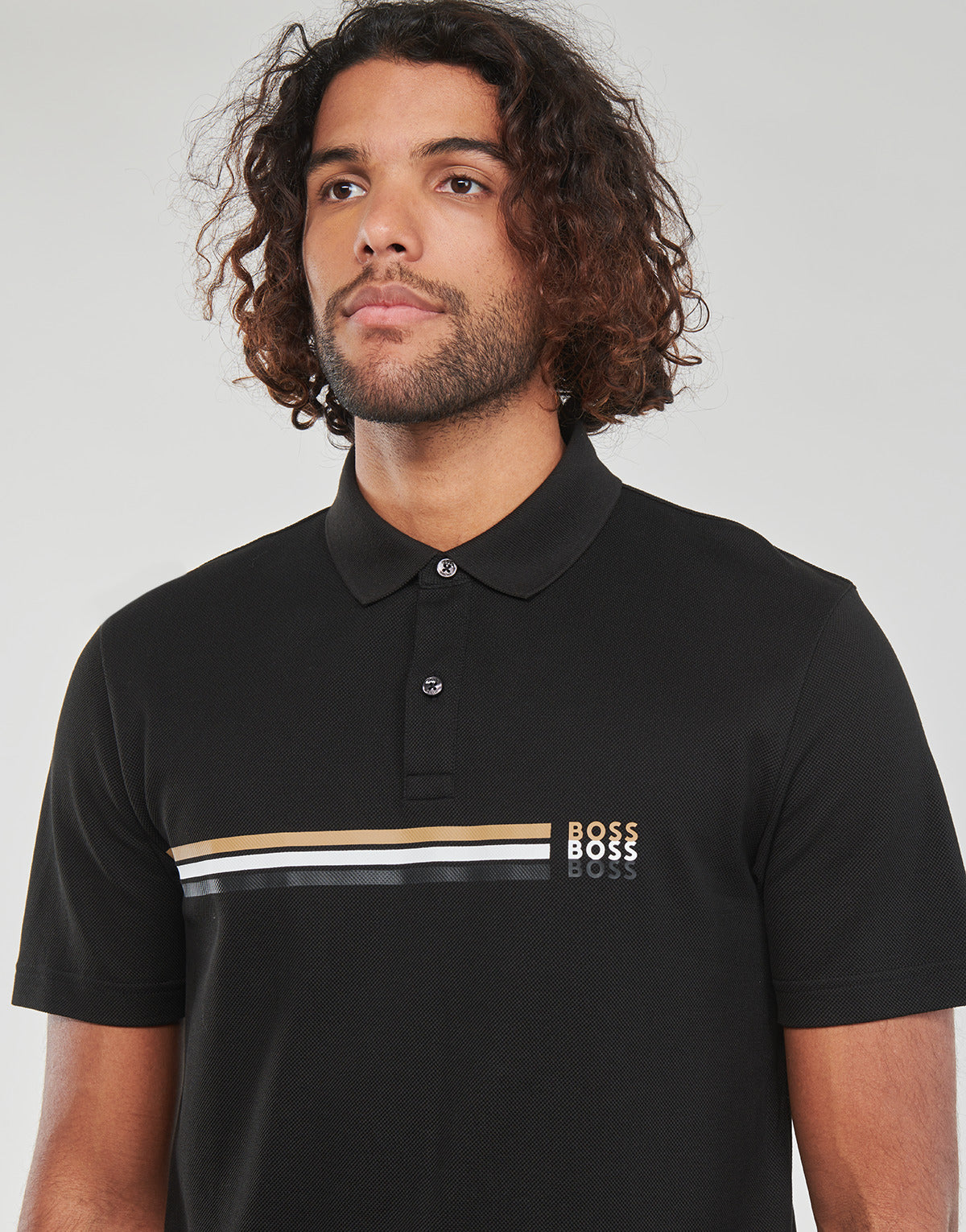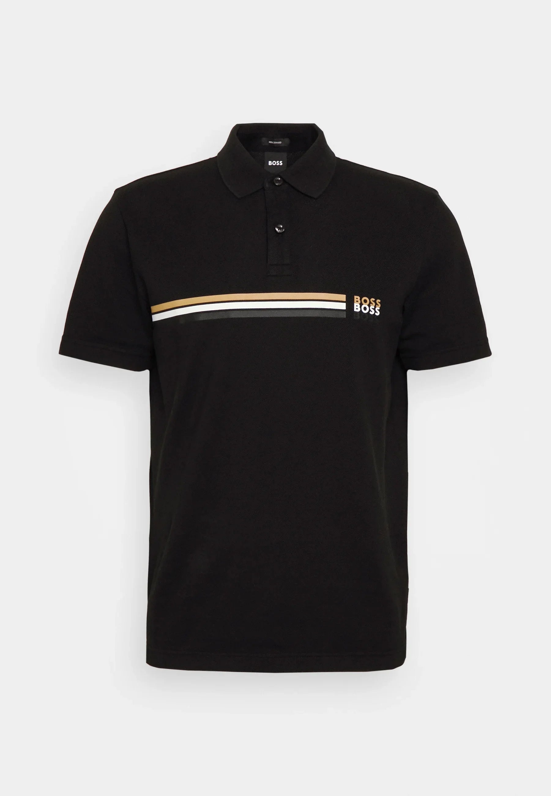 Step into a world of refined style with the Hugo Boss Black Edition Polo Shirt. This premium creation is a testament to the brand's commitment to excellence, featuring a sleek black backdrop accented with three elegant lines across the chest, each a testament to the shirt's sophisticated design. The iconic Boss logo sits proudly on the chest, a symbol of quality and luxury. The shirt's smart fit is tailored to perfection, ensuring a sharp silhouette for the discerning gentleman. Whether it's for a business casual look or a weekend outing, this polo is the embodiment of contemporary class, making it an essential addition to any wardrobe.