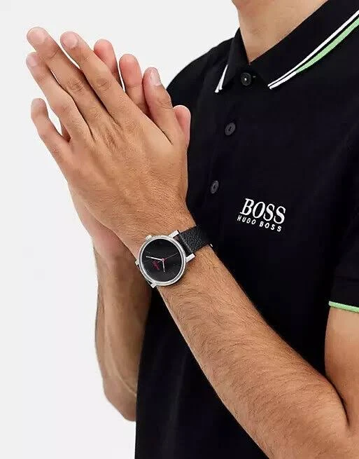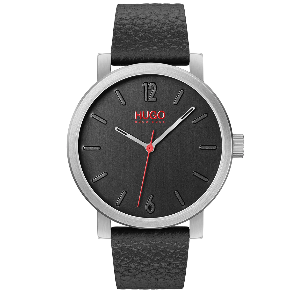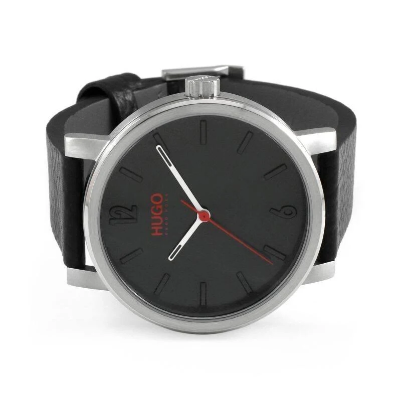 QUALITY MATERIALS, EYE-CATCHING STYLE: 42 mm 3-hand Stainless Steel Case Black Leather Strap Black Dial with Red Details