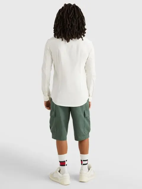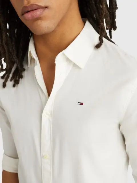 MADE IN BANGLADESH Description The Original Stretch Slim Shirt from Tommy Jeans comes in Classic White colour, featuring an embroidered logo on chest. Featuring a spread collar, this shirt features...