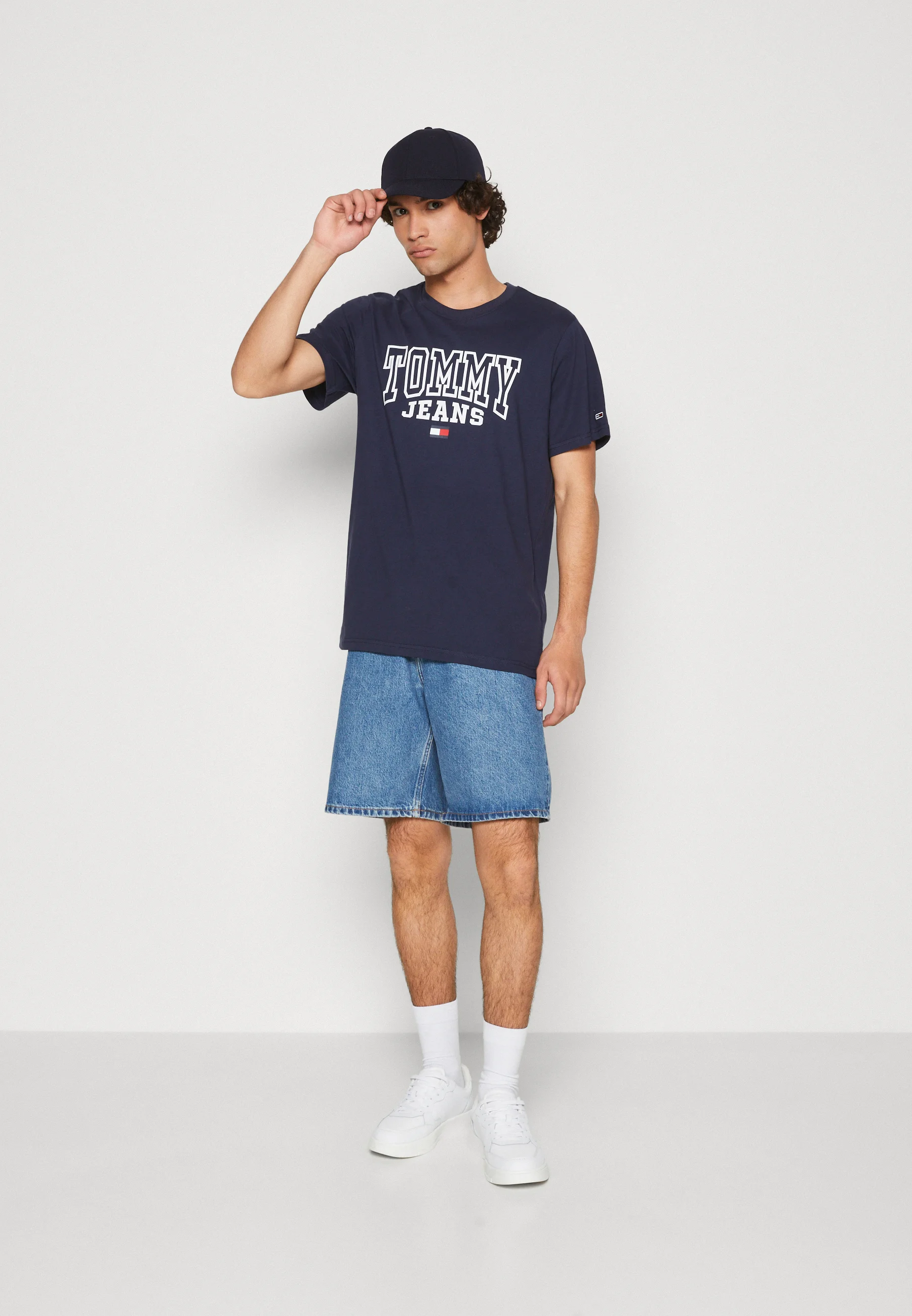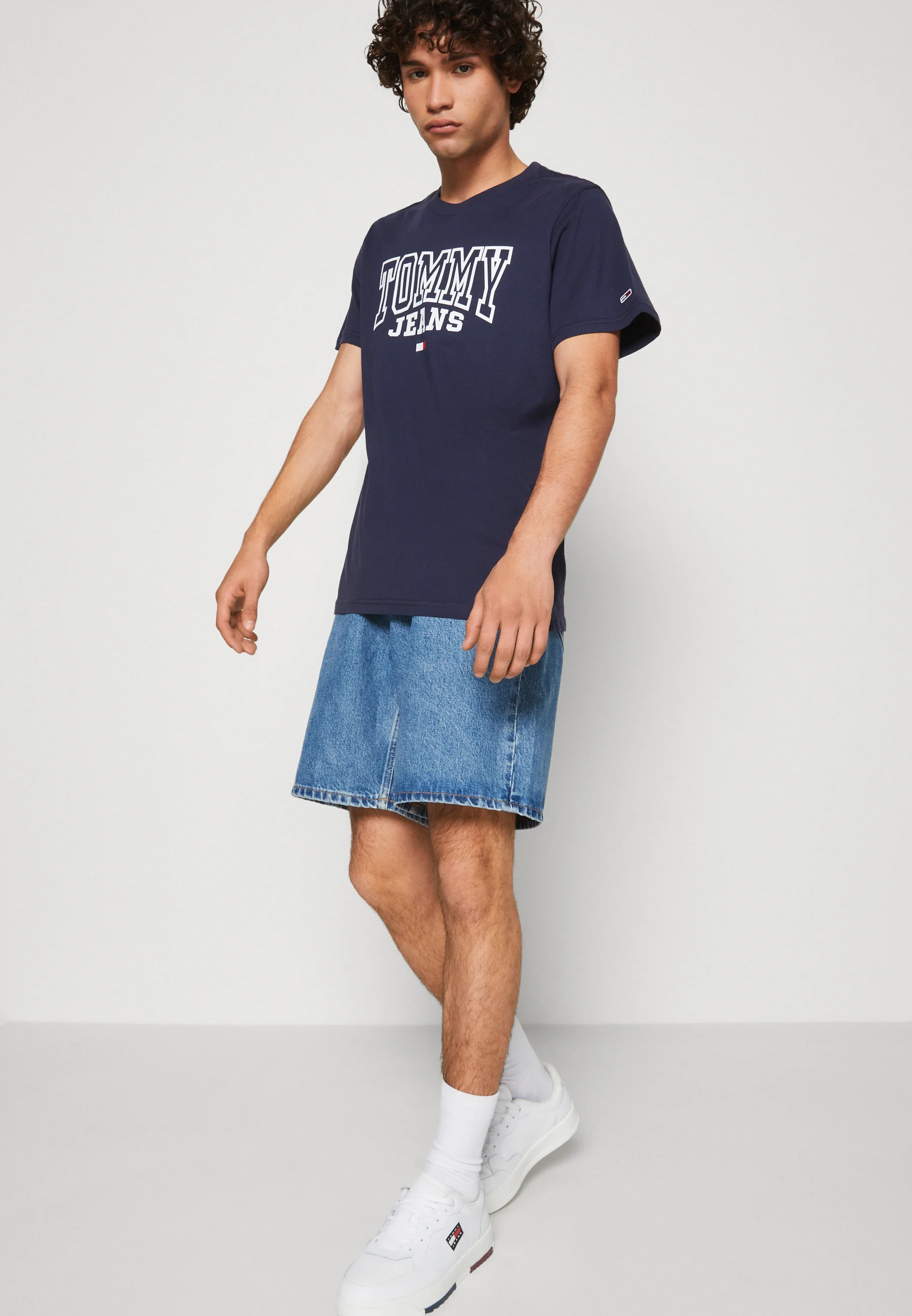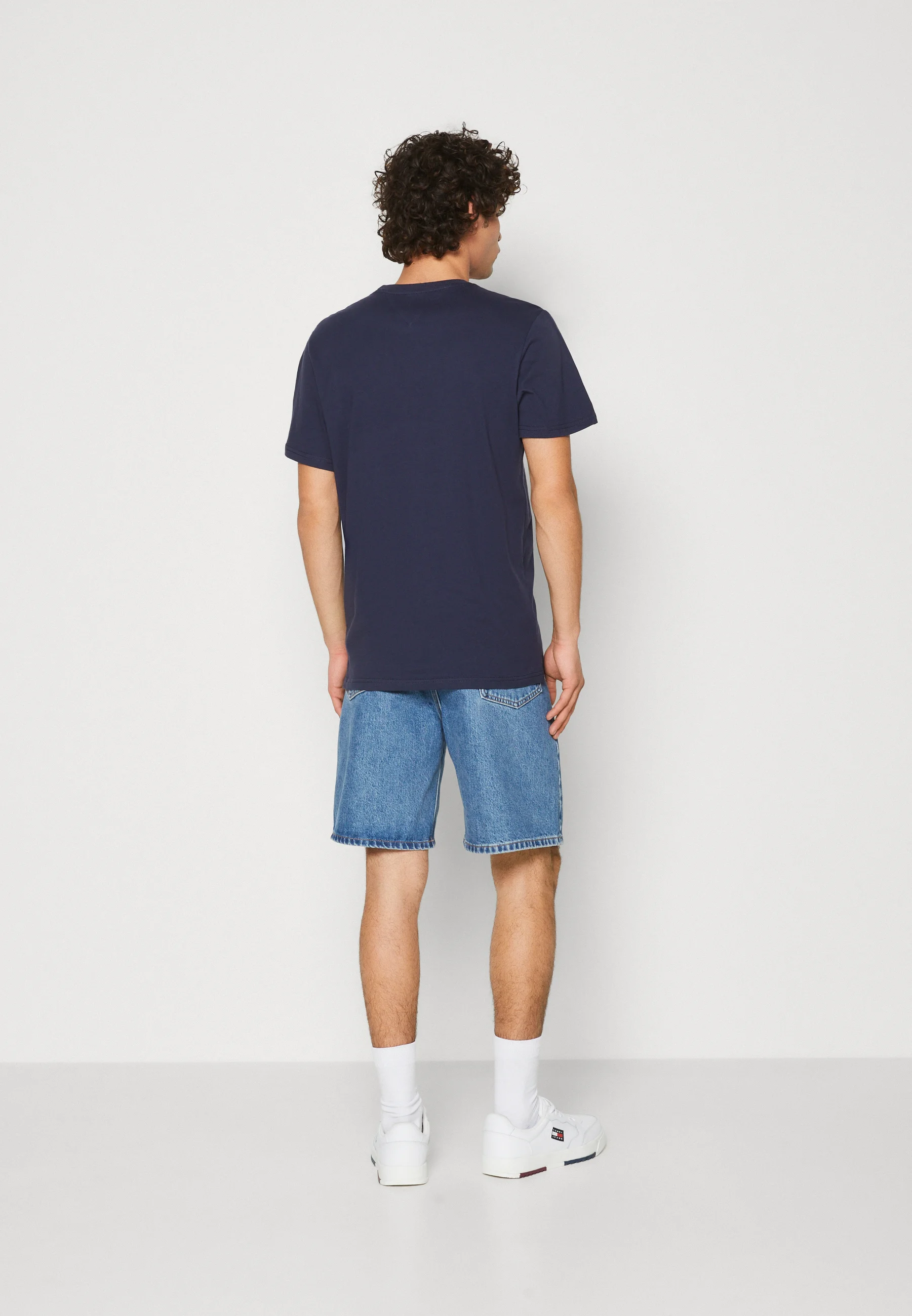 This is an exquisite navy t-shirt from the renowned brand, Tommy Hilfiger. Manufactured in Bangladesh, it proudly boasts the classic Tommy Jeans logo along with the flag. The design is both stylish and timeless, making it a must-have piece in any wardrobe. Its beauty lies in its simplicity and the brand's attention to detail. It's more than just a t-shirt, it's a fashion statement!