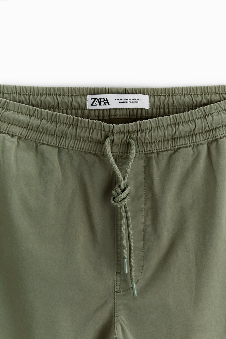 Slim fit pants with adjustable drawstring elastic waistband. Side pockets and back welt pocket. Washed effect. Elastic cuffed hems.