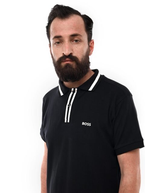 HUGO BOSS POLO WITH BOSS LOGO | BLACK