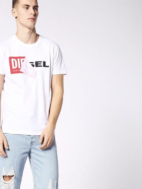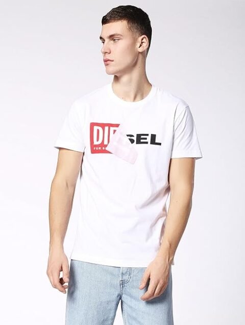 DIESEL-WHITE COTTON-FOLDED LOGO T-SHIRT